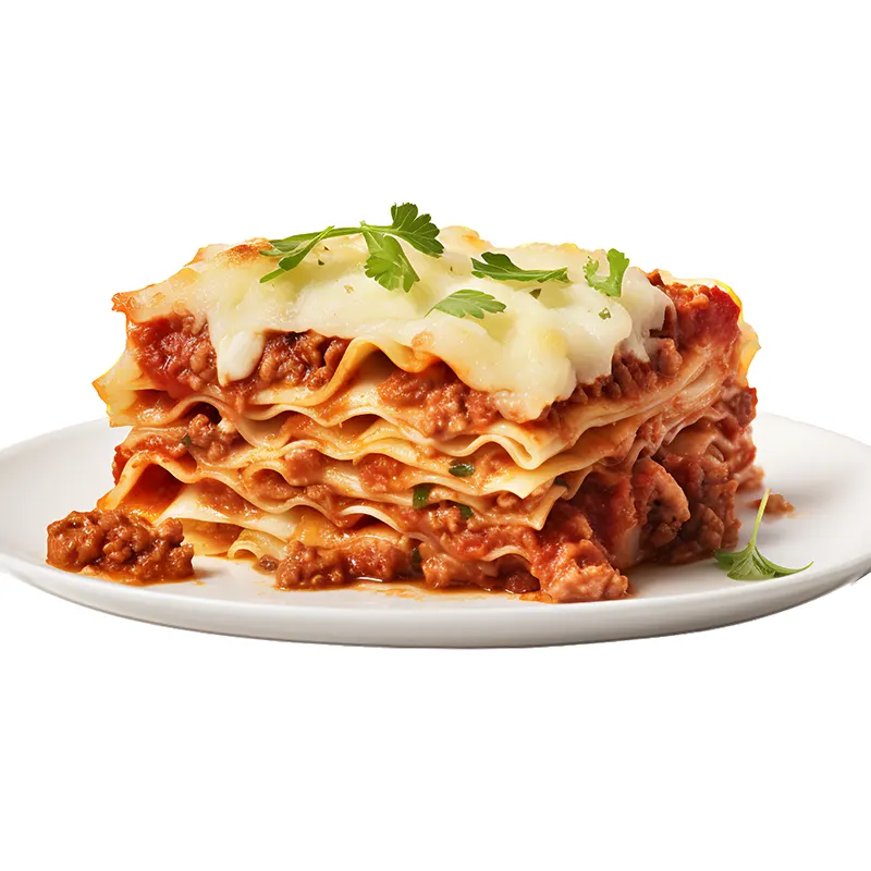 Nuestra Lasaña de Ternera con Bechamel es una receta tradicional italiana elaborada con ingredientes de primera calidad. Capas de pasta fresca al huevo se combinan con un ragú de ternera cocinado lentamente en salsa de tomate y especias, cubierto por una suave bechamel casera y queso gratinado al horno.